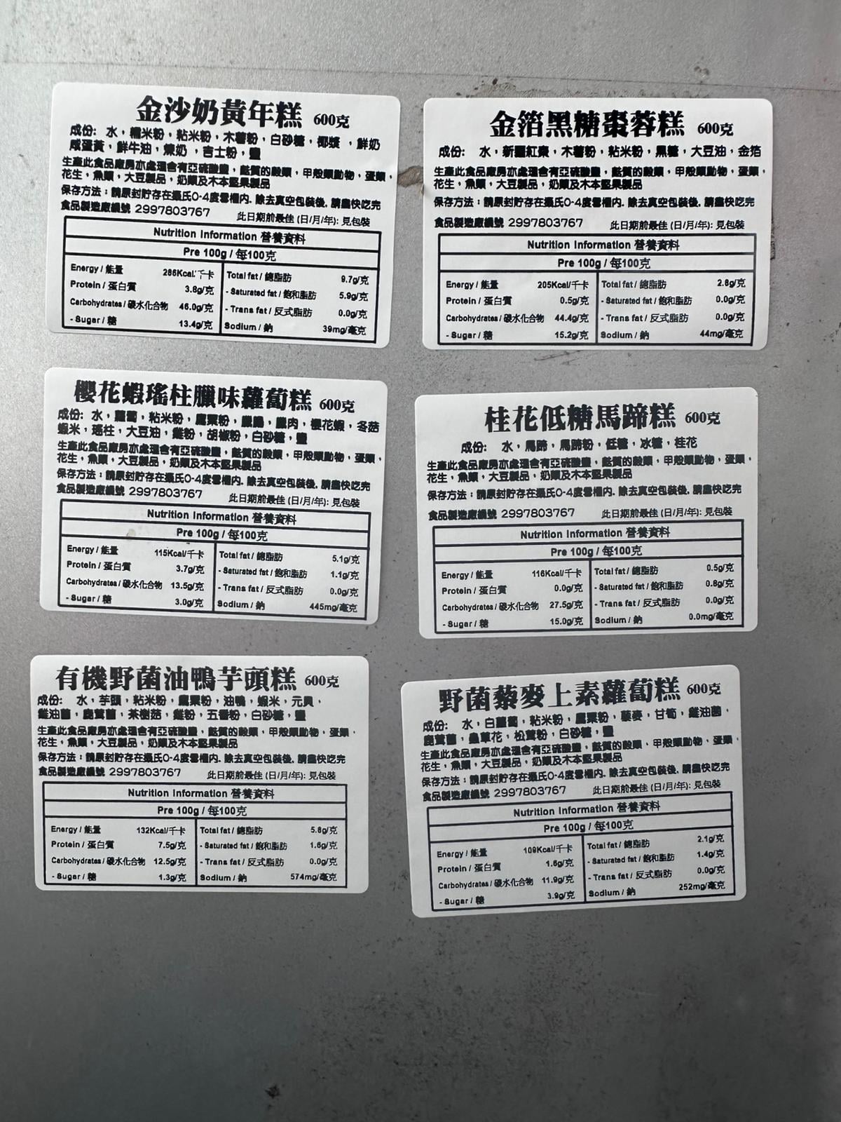 媽子廚房 真材實料 用心烹調 100%香港製造 無添加防腐劑 | 無添加味精 A. 櫻花蝦瑤柱臘味蘿蔔榚600G B. 金沙奶黃年榚600G C. 有機野菌油鴨芋頭榚600G D. 金箔黑糖棗蓉榚600G E. 桂花低糖馬蹄榚600G F. 野菌藜麥上素蘿蔔榚600G 29/1截單 23:59 收貨日 6/2 或 11/2 (公司雪櫃空間有限,到貨當天必需即日取走,沒有例外,如遲取而影響食物品質,本公司恕不負責) 保質期: 生產後3個星期