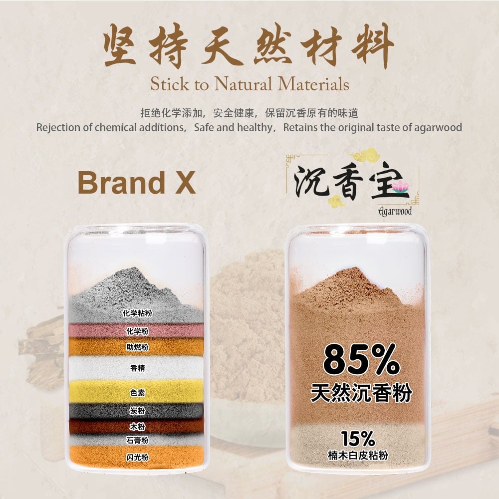 ✅ 85% 天然沉香粉 + 15% 楠木白皮黏粉