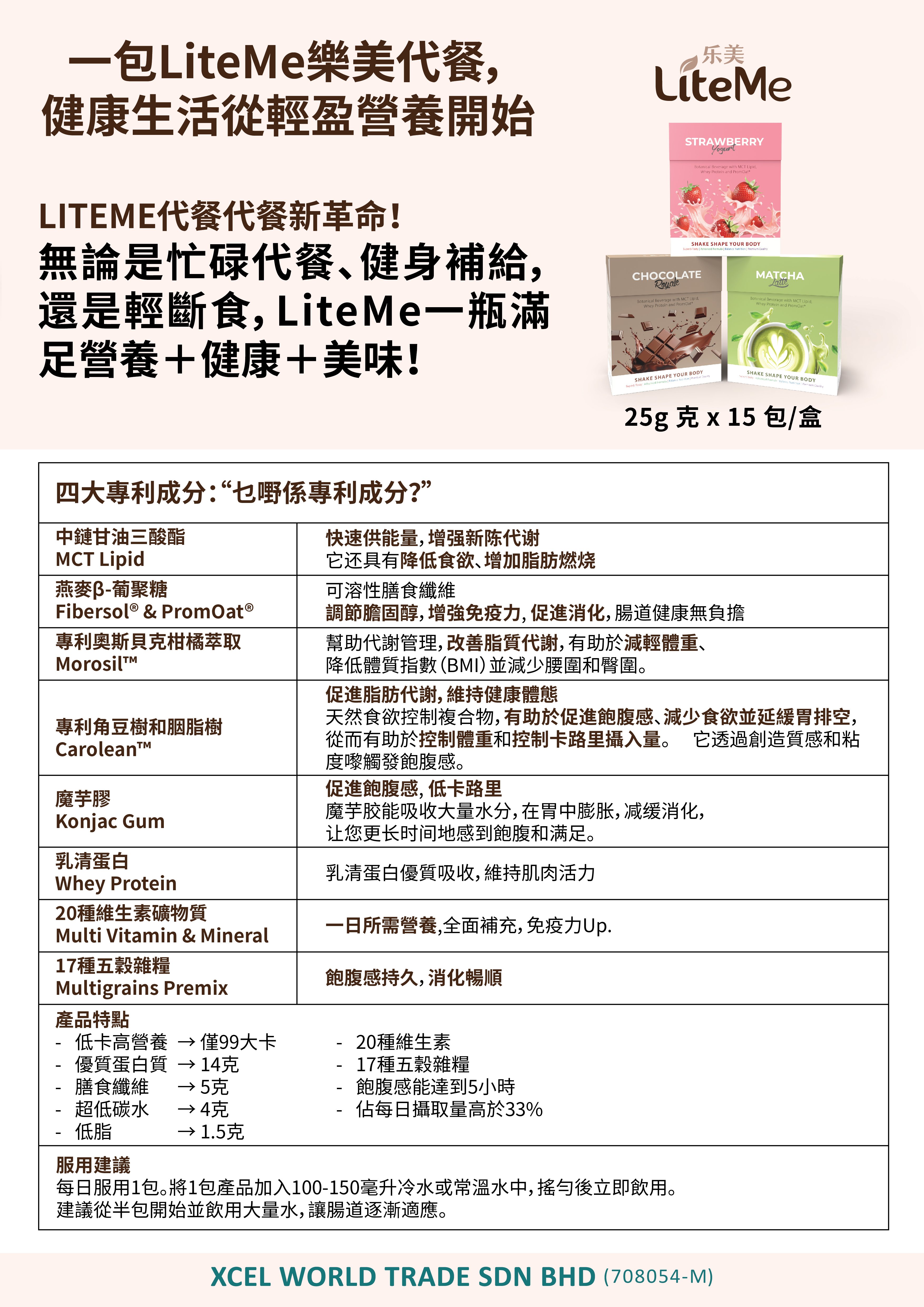 🇲🇾馬來西亞保健品公司XCEL🏅全新推出的Lite-Me 代餐奶昔🥤富含多種維生素,礦物質和健康營養素💪🏻健康美味又方便😋每餐熱量低於99卡路里😱減肥瘦身幫到你