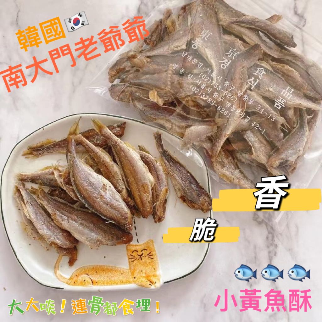 老爺爺黃魚酥 南大門老爺爺出品🉐️相信好多朋友都食過👍🏻信心嘅保證💯 小黃魚酥🐟香👈酥👈脆💯完美到不得了🥰一啖入口連骨都可以食埋🌈當零食或者送粥🥣送飯🍚都可以佢真係唔係講笑🤣魚嘅鮮味全部一啖一啖食落去👏唔會醒亦都唔會硬🕶️健康又補鈣日日食👈真係所有身體需要嘅鈣質都唔使擔心🤣屬於必食系列👍🏻 規格:150g 儲存方法:建議開封後盡快食用,避免陽光直射