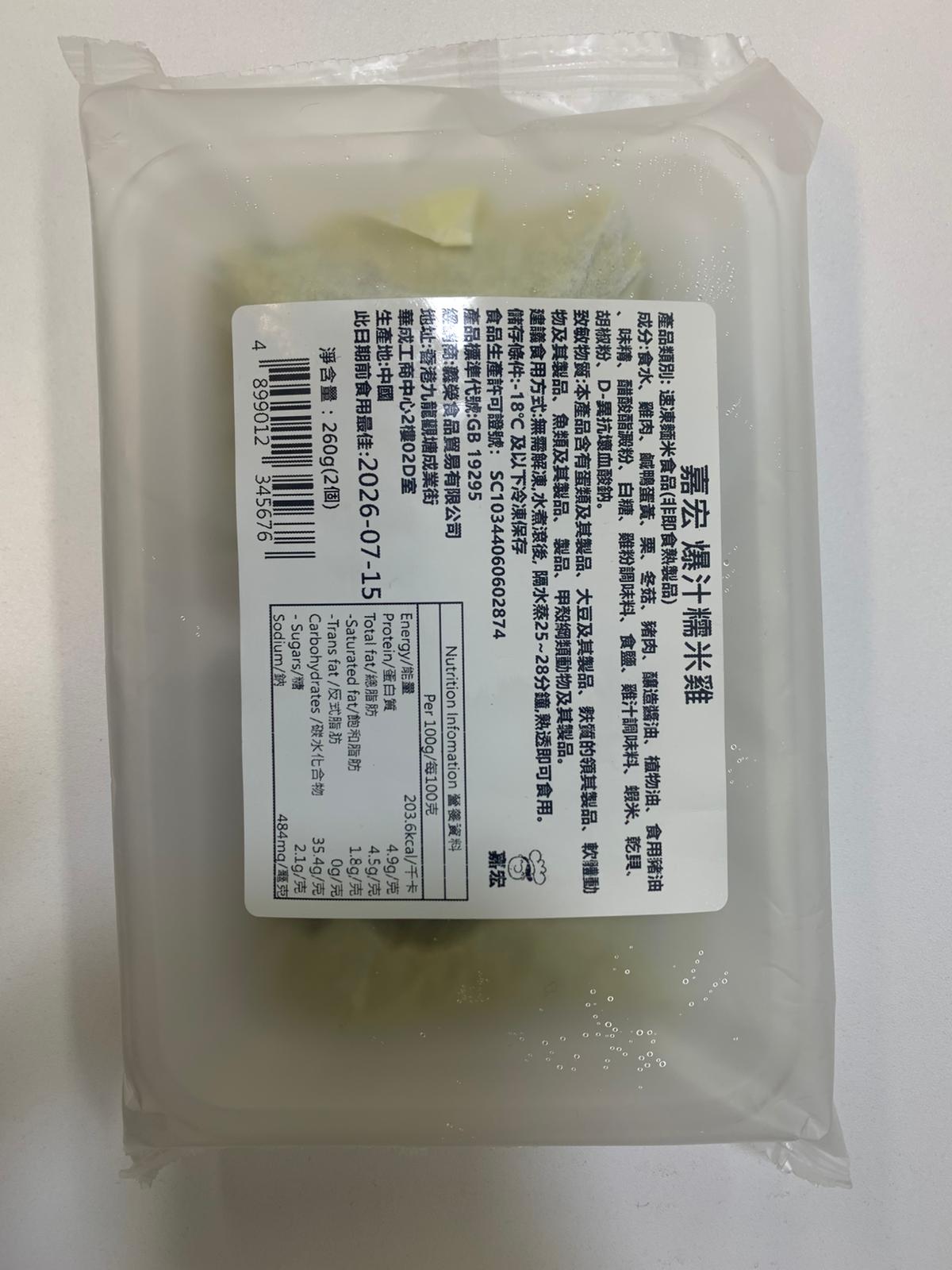 嘉宏至尊點心系列-爆汁糯米雞260G(一盒2件)