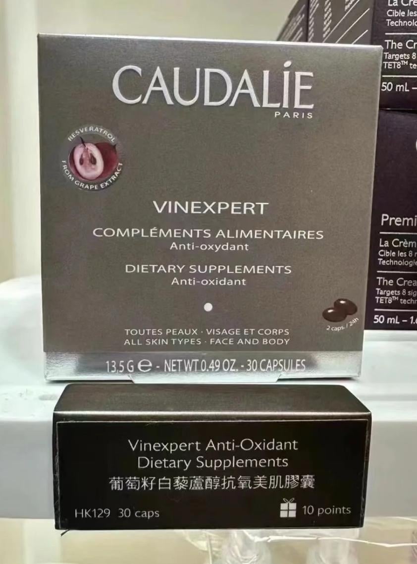 16/12截單 12月尾到貨 香港專櫃貨 Caudalie 葡萄籽30粒 肌膚類型 : 適合所有肌膚 質地 : 葡萄美肌食品補充劑 主要成分 : 琉璃苣油, 葡萄籽油, 白藜蘆醇 使用 : 早晚使用 產品簡介 CAUDALIE 研發出100%天然純素的美肌膠囊,是市面上唯一加入白藜蘆醇及葡萄籽多酚、兼具抗氧化及抗皺功效的美顏補充品,有效減少人體 48% 的自由基,預防80%皺紋形成,從內而外為肌膚帶來全面高效抗氧屏障。 當中蘊含高效抗氧化的葡萄籽多酚、緊緻抗皺的白藜露醇、深層滋潤修復的葡萄籽油、為肌膚補充水份的初榨琉璃苣油、保持肌膚彈性的初榨月見草油。臨床實驗證實,皮膚密度能增加17%,同時幼紋及皺紋顯著地減少達53%。 內服真的比那些美白面膜美白精華的即時效果要強得多! 網評👇🏻👇🏻👇🏻 ➡面部:從黑眼圈大黃臉,到現在黑眼圈幾乎淡沒了、臉蛋白嫩透亮 乾淨! ➡身體:身上暗沈的地方比如胳膊肘膝蓋,就是那些黑色素沈澱嚴重的地方,都肉眼可見的淡了,感覺全身膚色都均勻了、白淨了。 食左無效既原因👇🏻 ▶️吃的時間不夠久 內服品都要長期吃呀!只吃了一兩周就想看到效果那是不可能,因為它是調養你身體的一個過程。而且葡萄籽要在身體里長期維持高濃度一段時間才會發揮出最大的效果,所以一定要堅持吃~ ▶️吃的時間不對 葡萄籽里的原花青素雖然是抗氧美白的好成分,但是也有一定的提神作用,所以不要在晚上吃哦。 ❣️葡萄籽的正確吃法❣️ 我是每天早上吃1粒葡萄籽,不與含高濃度咖啡因的飲品一起服用,然後每天都多喝水。